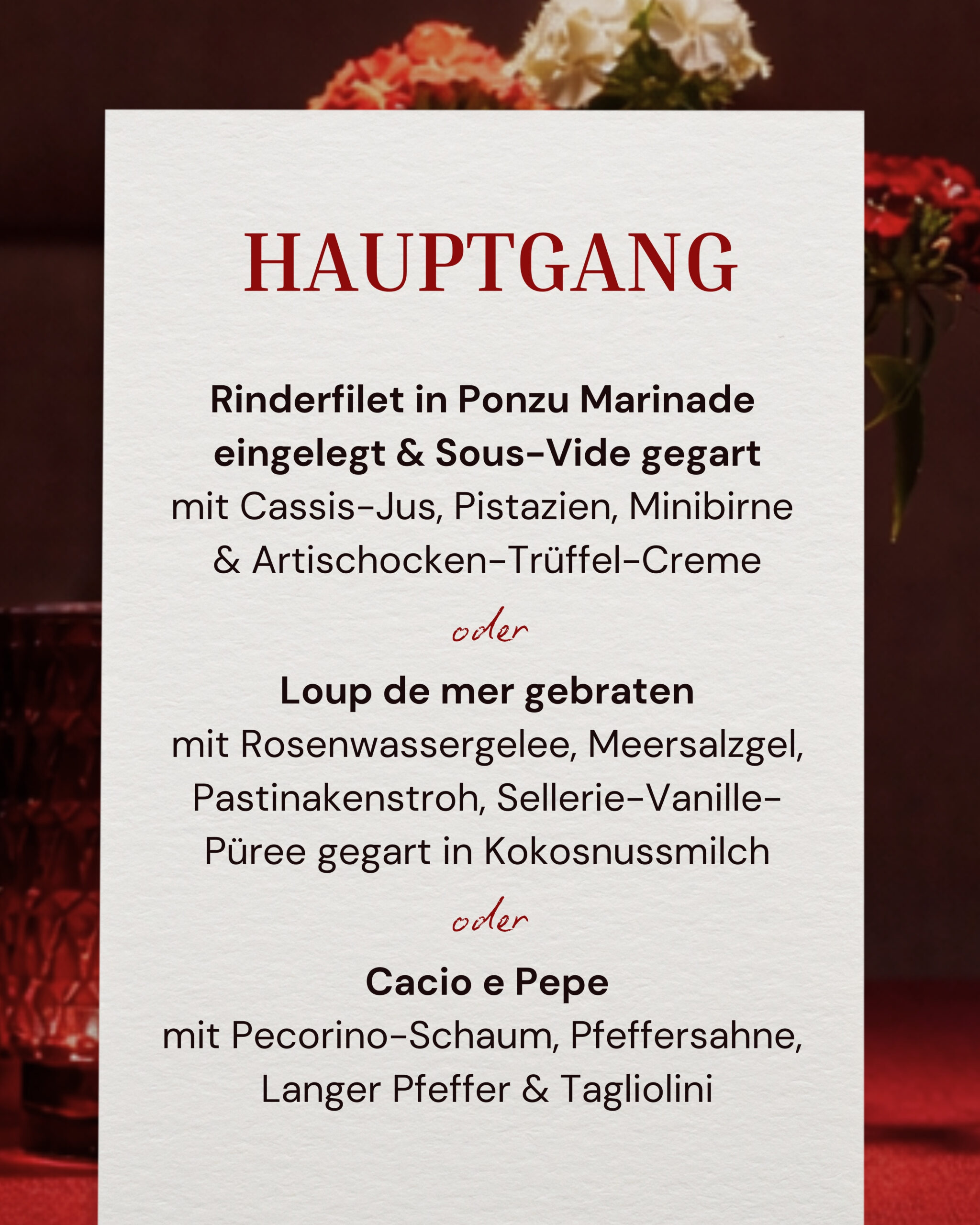 auf Wunsch mit Weinbegleitung für 38€ pro PersonJetzt reservieren unter: 0361 601 960 601
