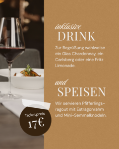 Tickets: 17 € – inkl. Lesung, Begrüßungsgetränk & Speisen