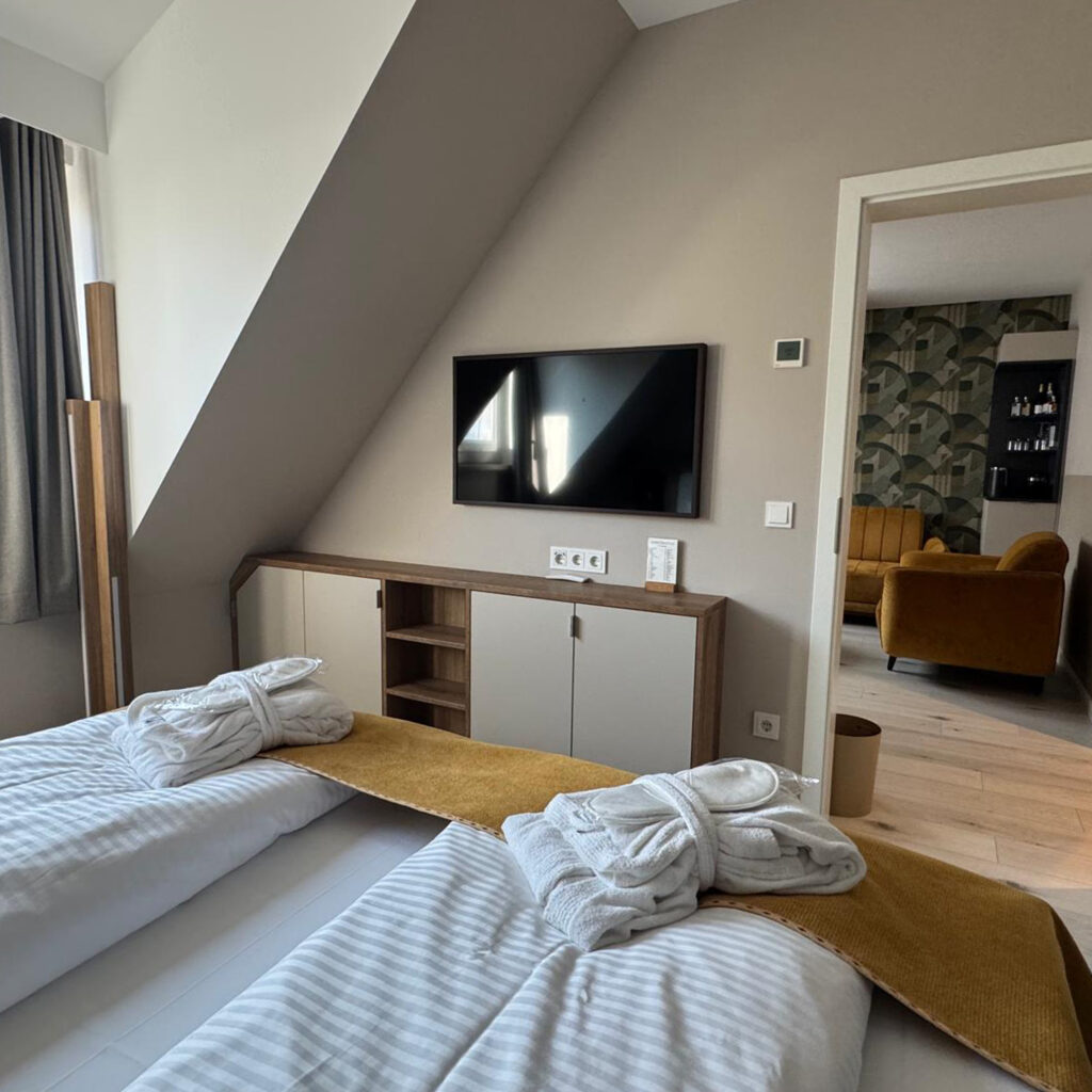 • Minibar, Q-LED-TV, Klimaanlage, Kaffee- & Teestation, WLAN, Eiswürfelbereiter
