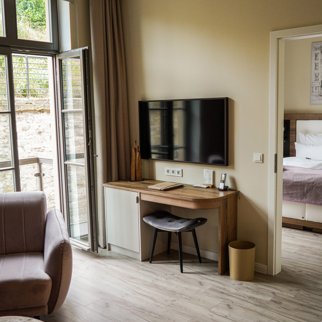• räumlich getrennter Wohn- & Schlafbereich, begehbarer Kleiderschrank