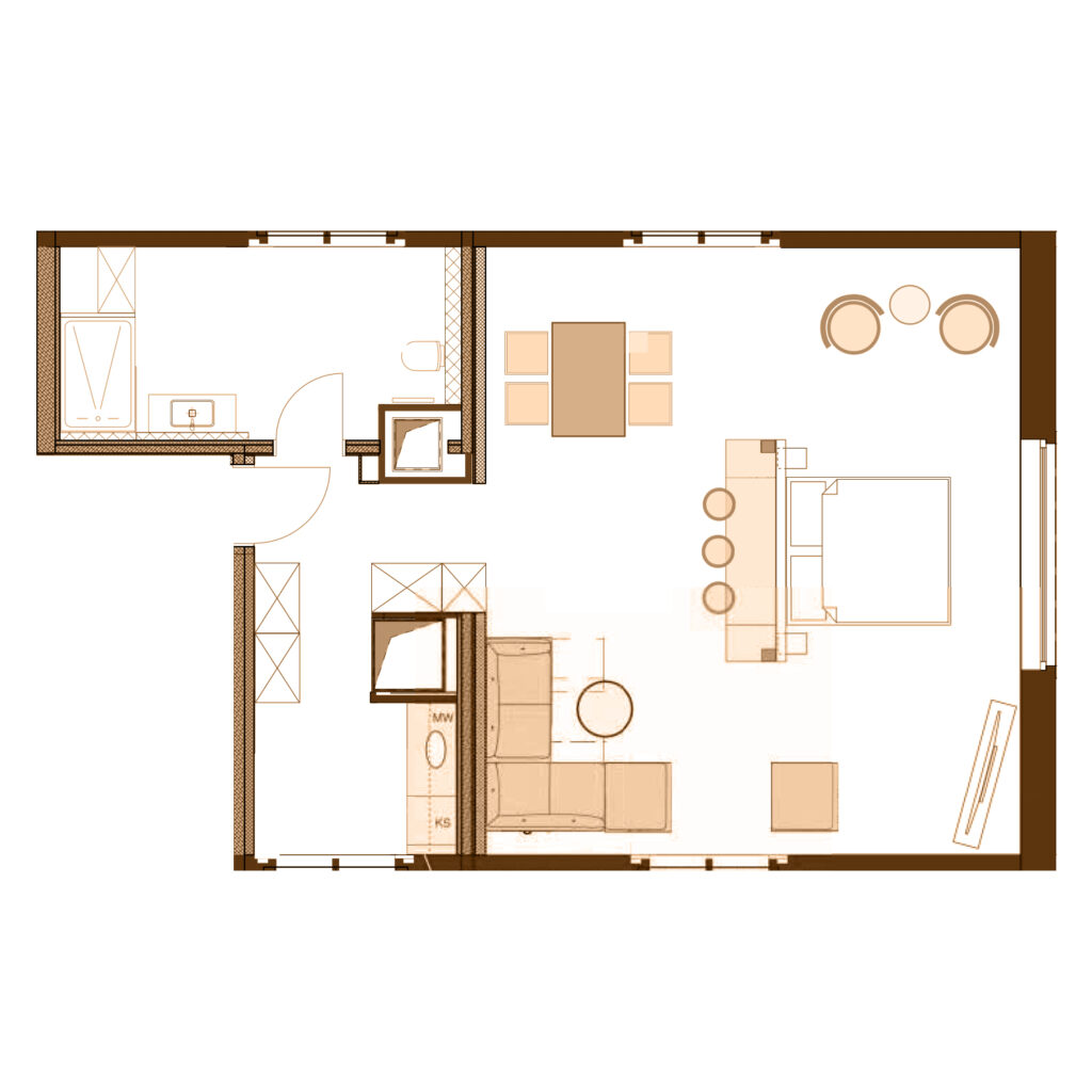 • kombinierter, großzügiger Wohn- & Schlafbereich mit Blick über die Dächer Erfurts
