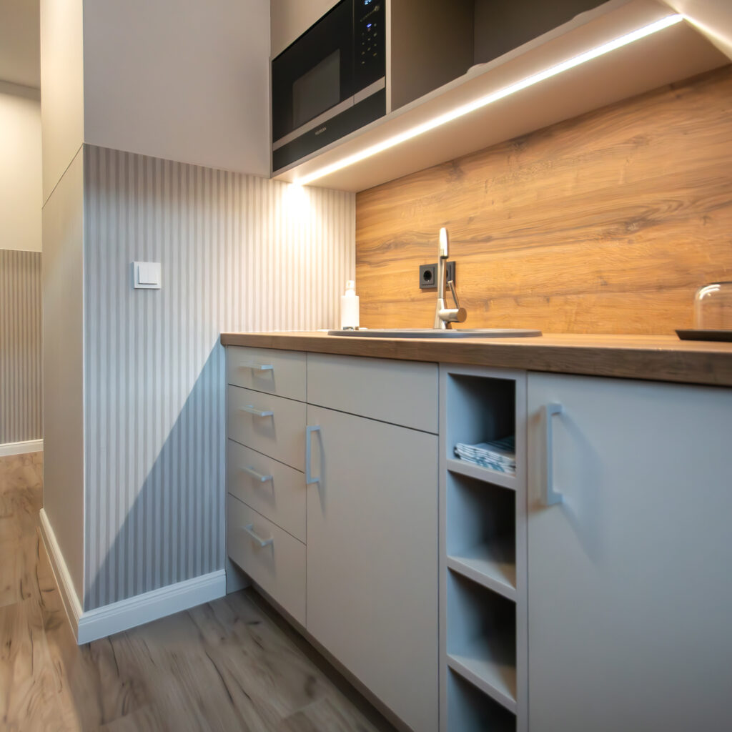 • Pantryküche mit Mikrowelle und Kühlschrank